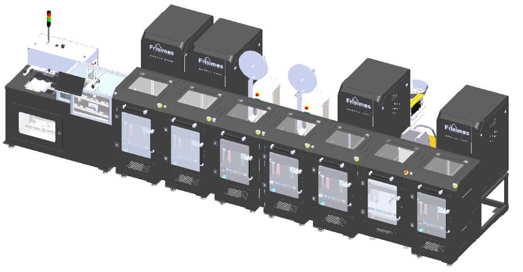 Modules in this line: Manual Uploader, MultiStrip, Spreader, MultiCrimp (x2), Inserter, Overmold, Unload.